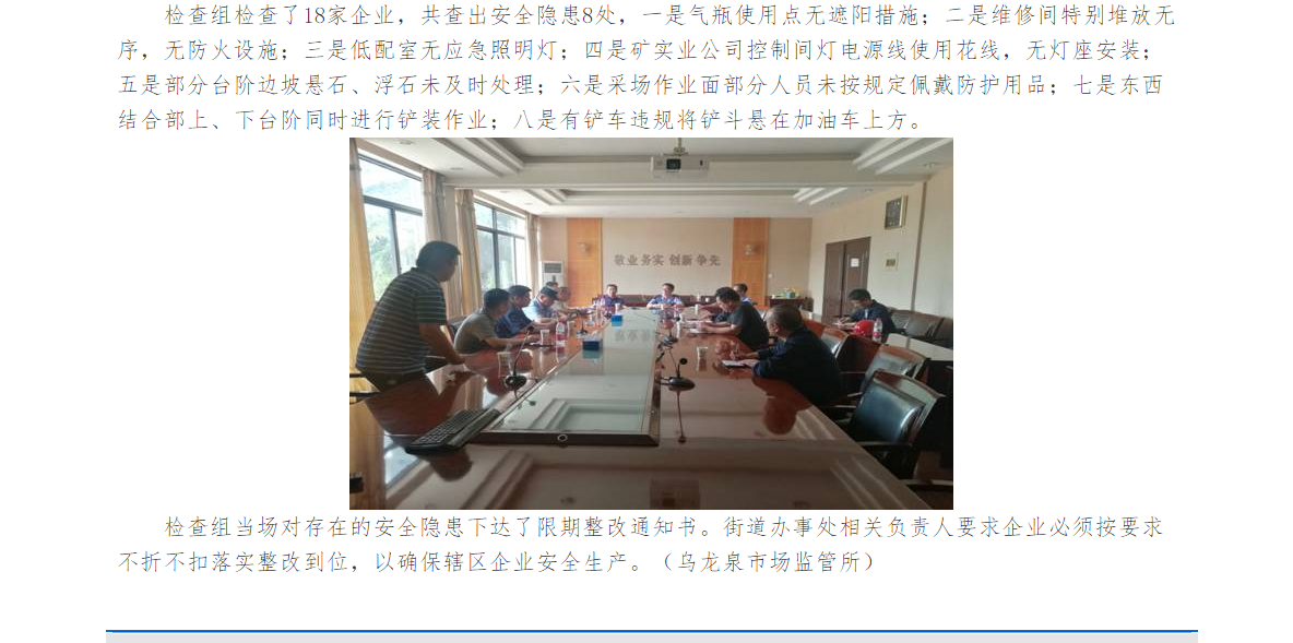 我公司参与乌龙泉街非煤矿山安全生产检查