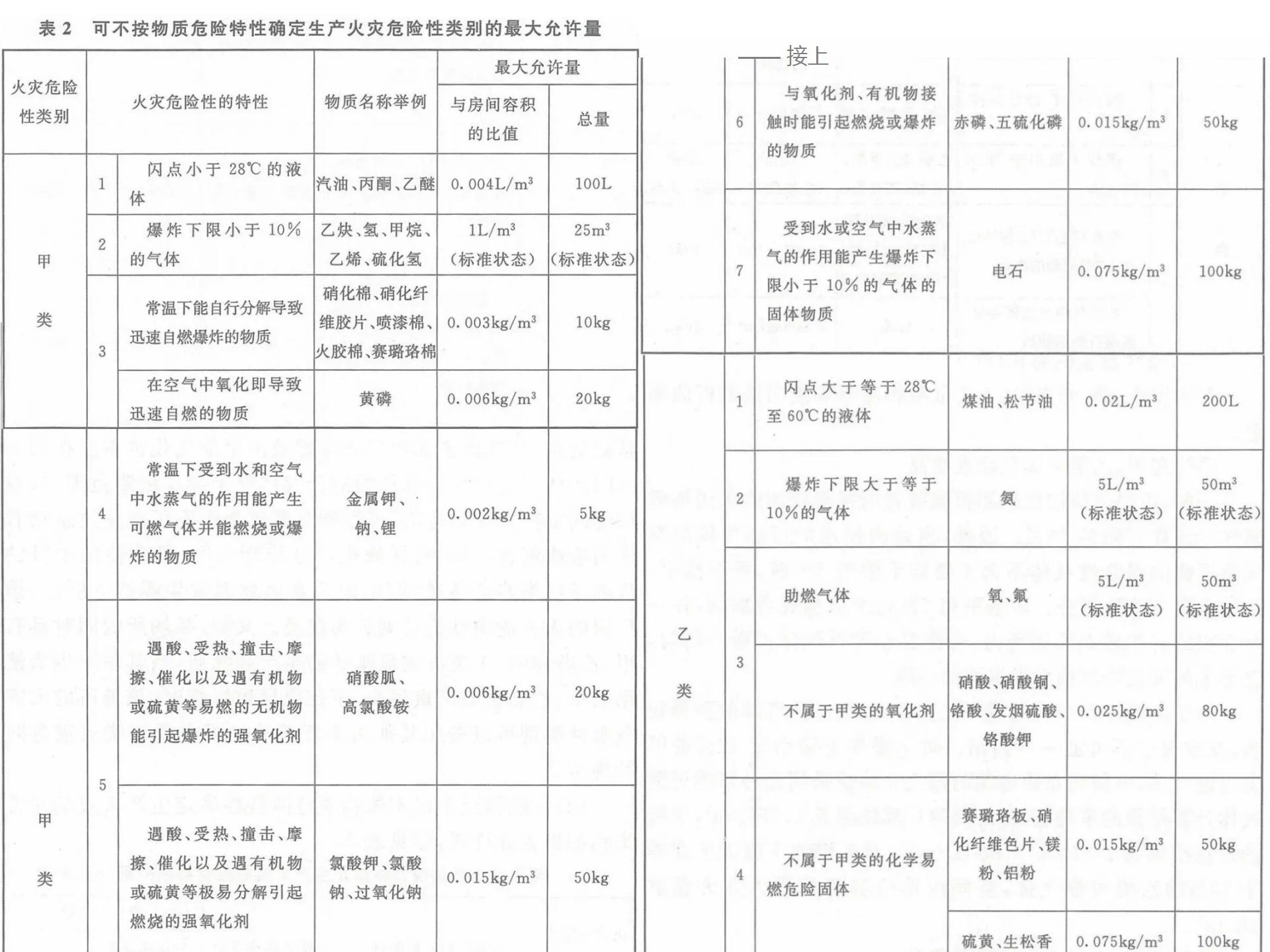 表2列出了部分生产中常见的甲、、、乙类火灾危险性物品的最大允许量。。。本表仅供使用本条文时参考。。现将其计算方法和数值确定的原则及应用本表应注意的事项说明如下: