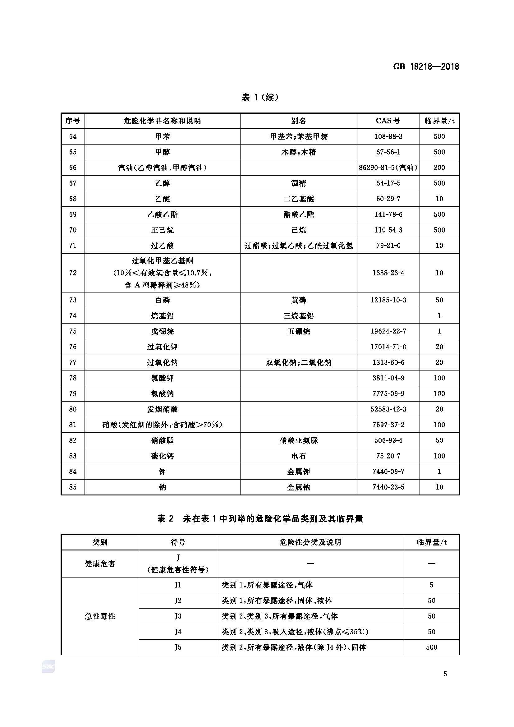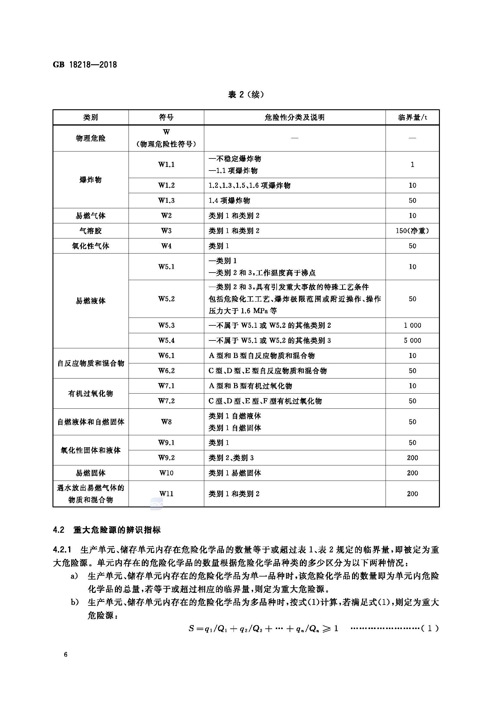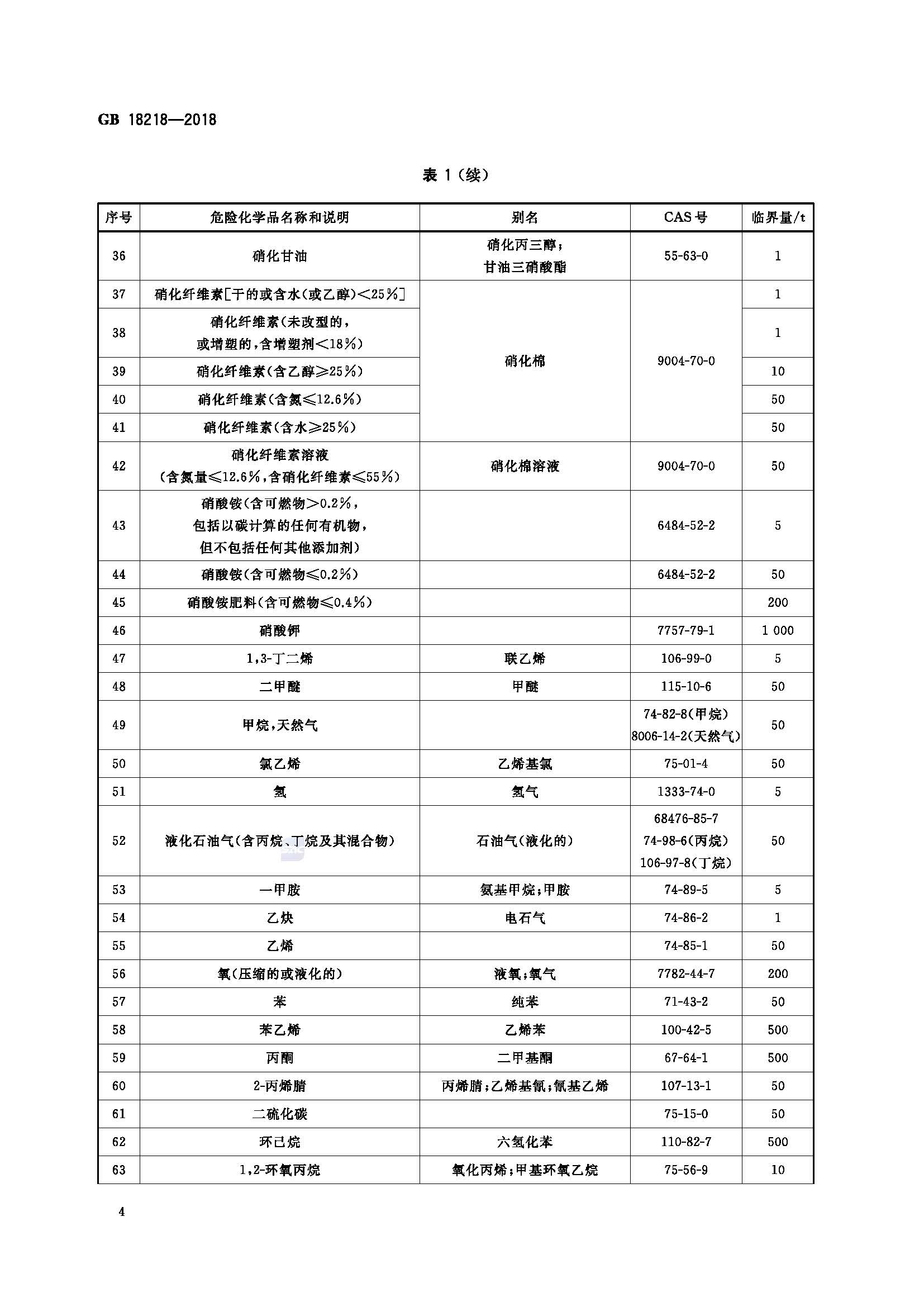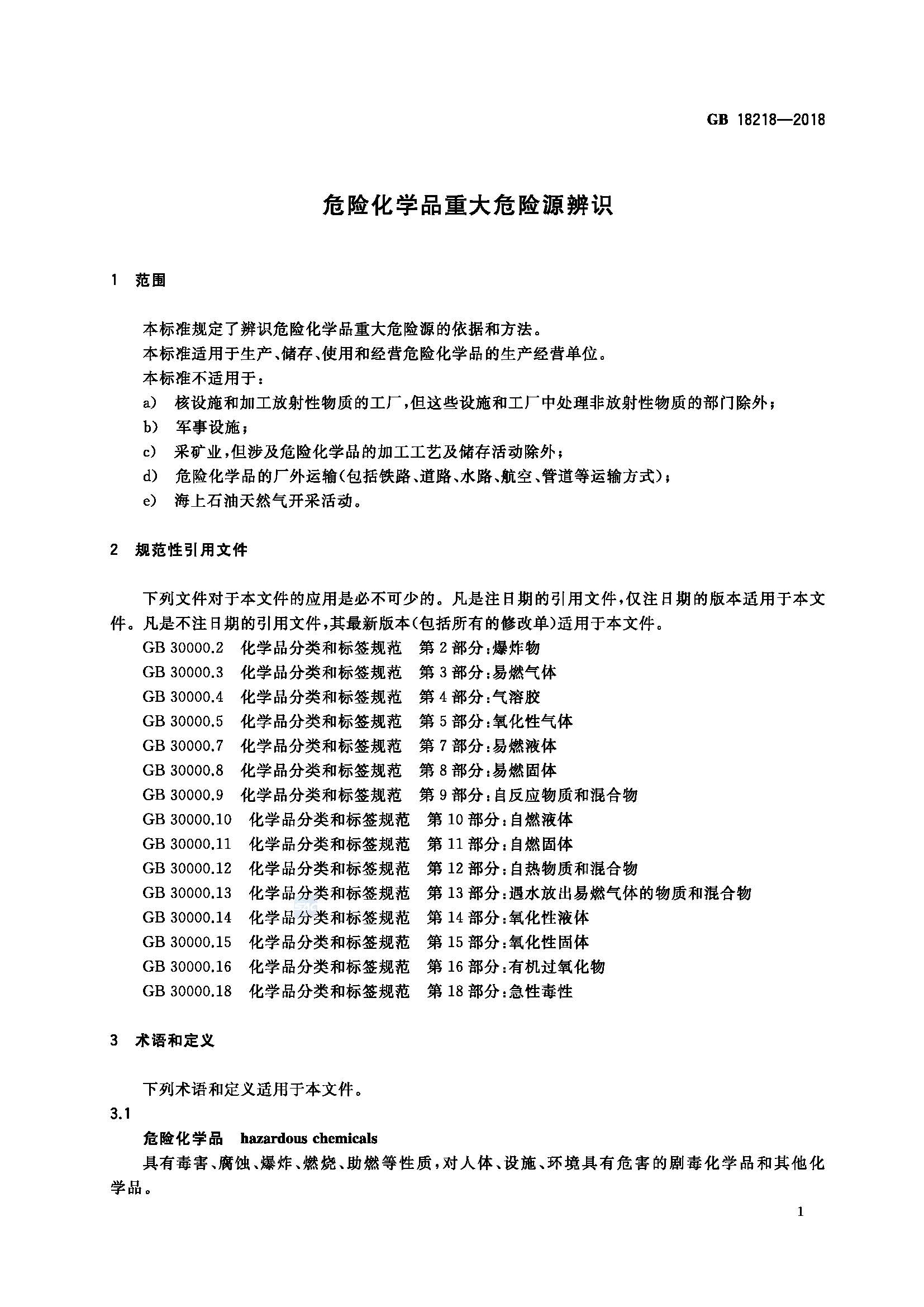 GB 18218-2018 危险化学品重大危险源辨识(2019-3-1实施)