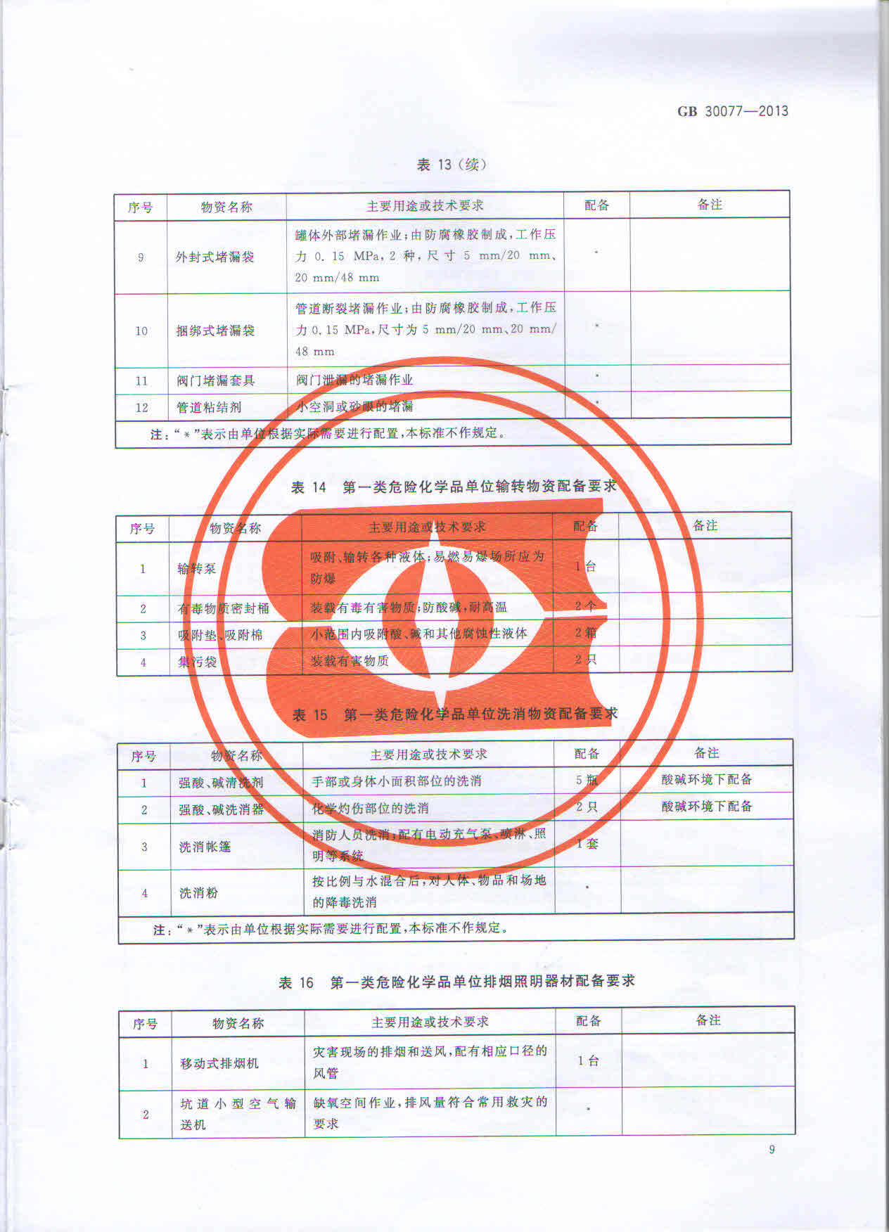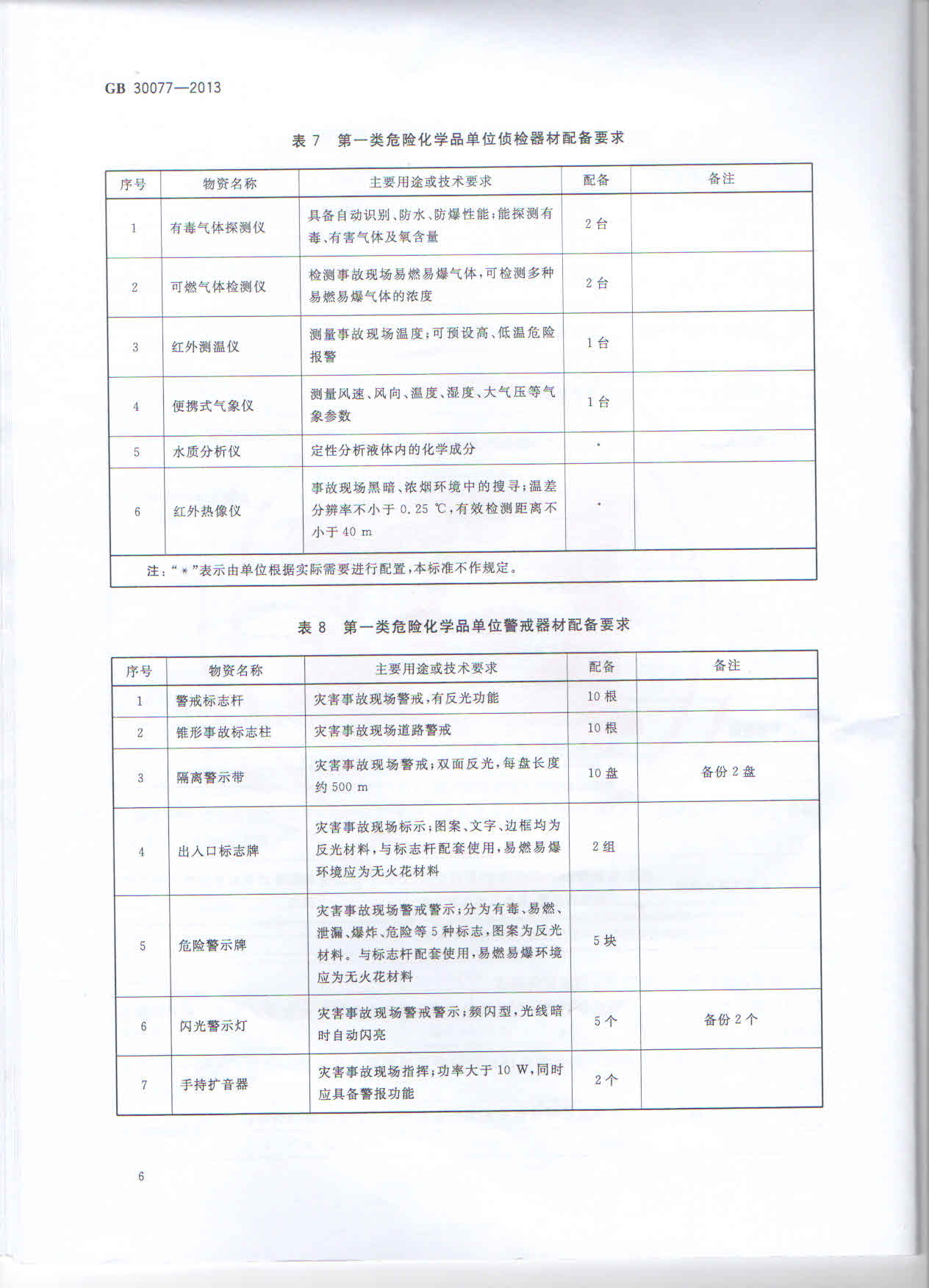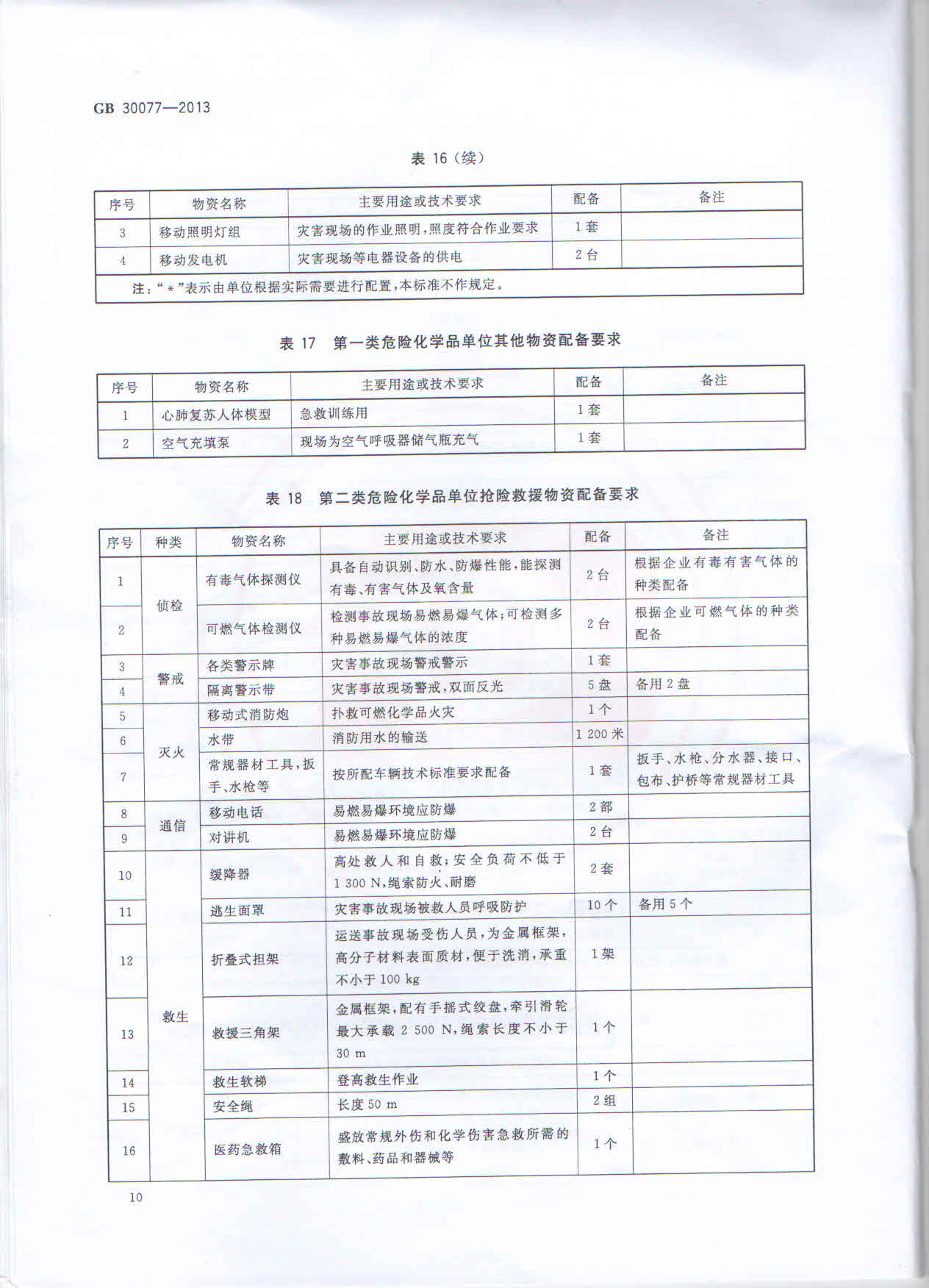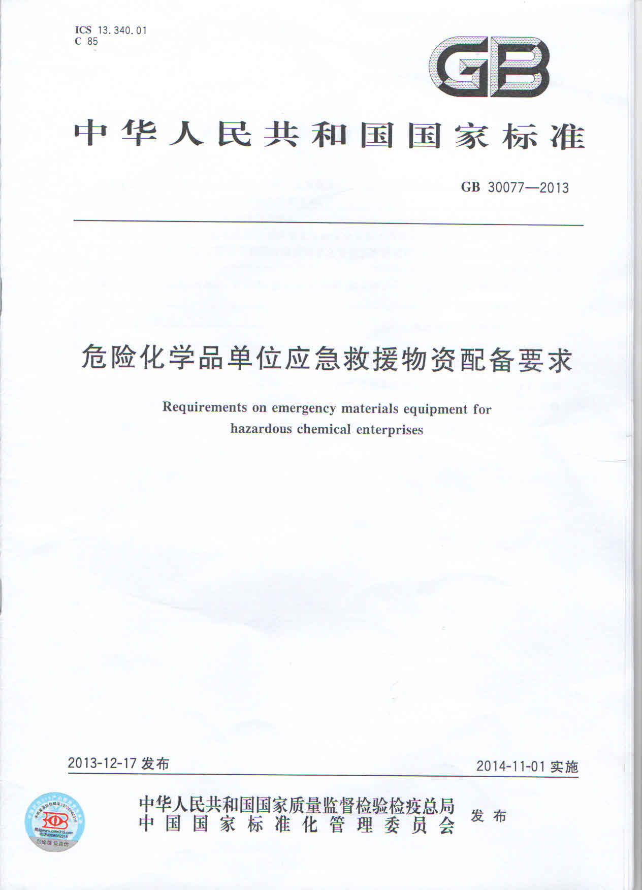 GB30077-2013危险化学品单位应急救援物资配备要求