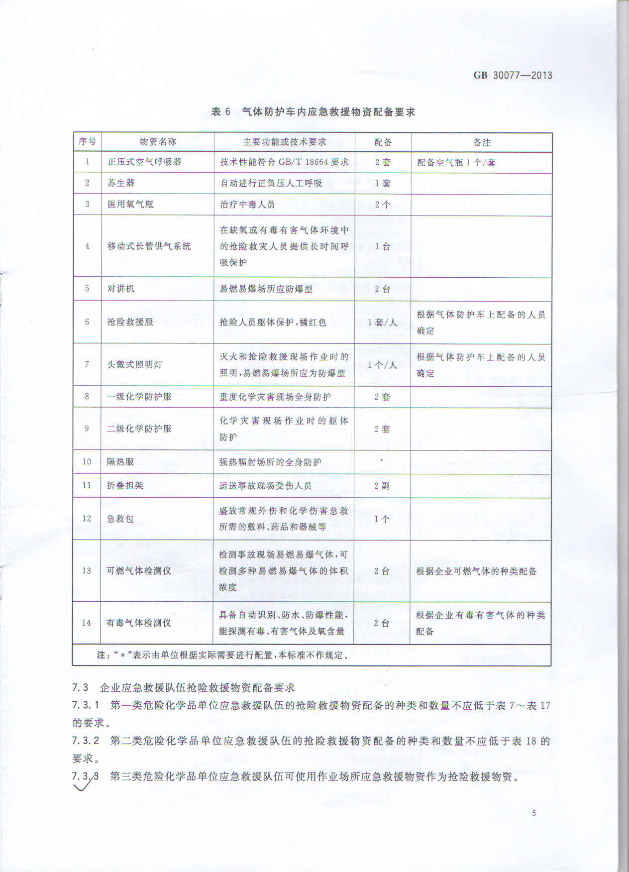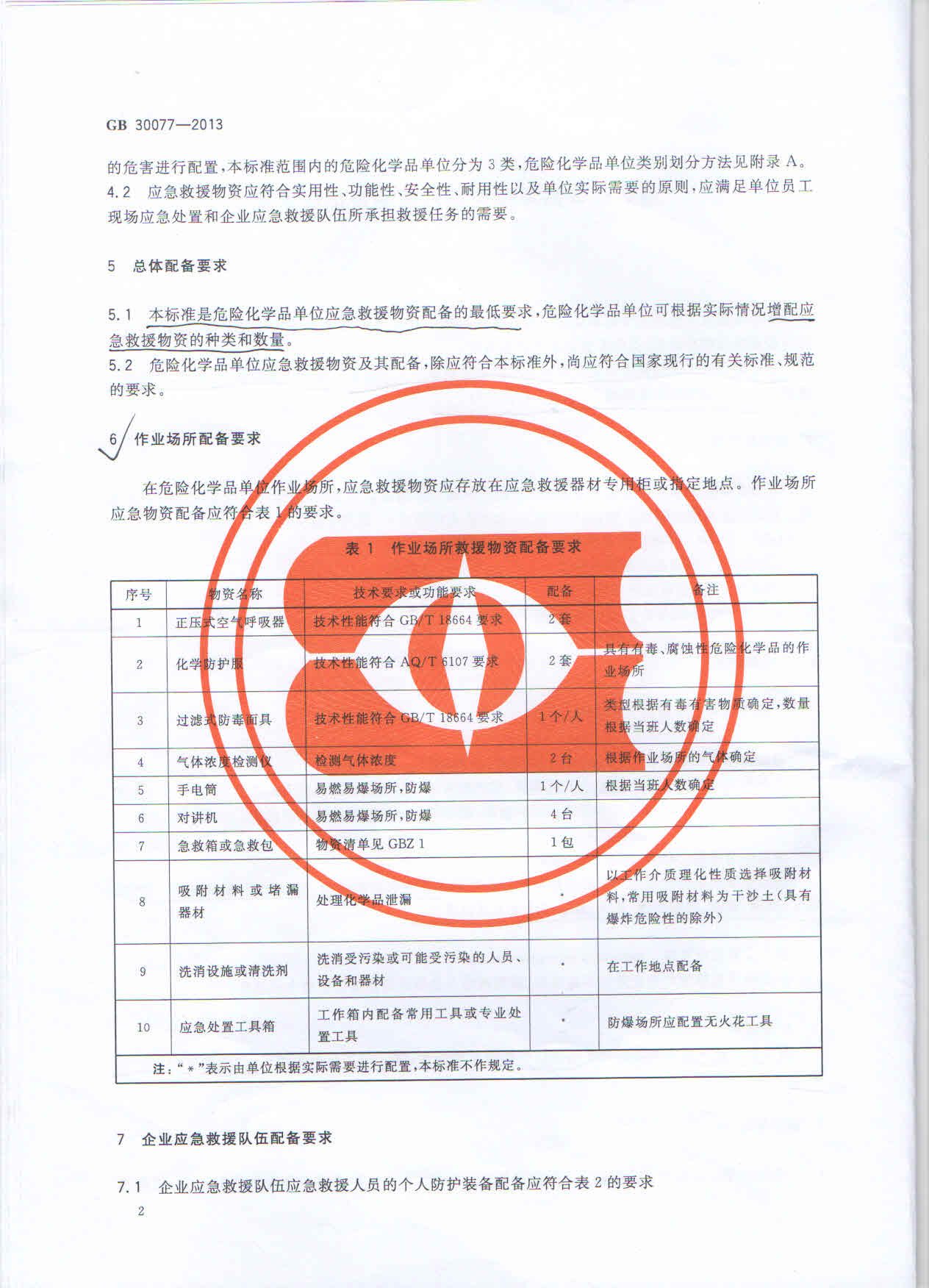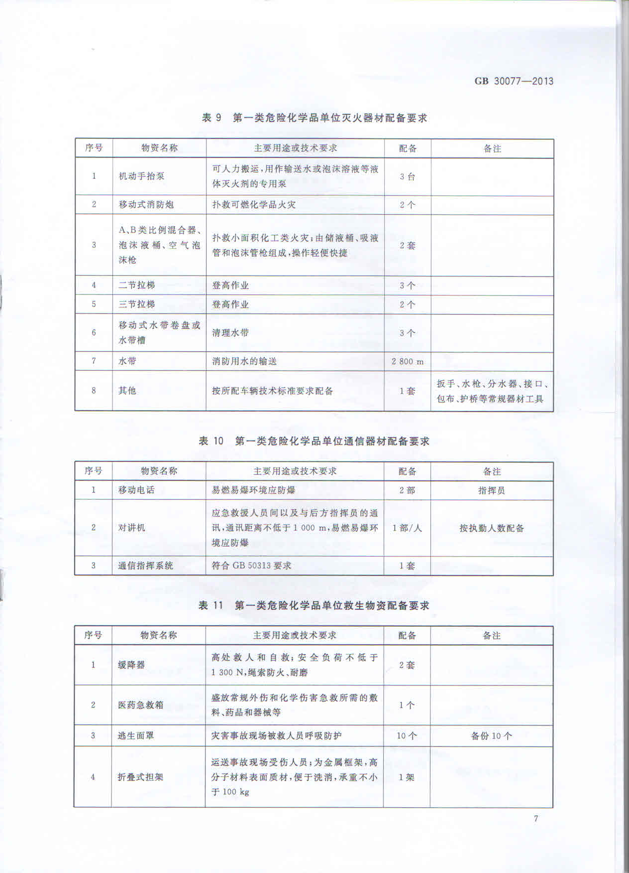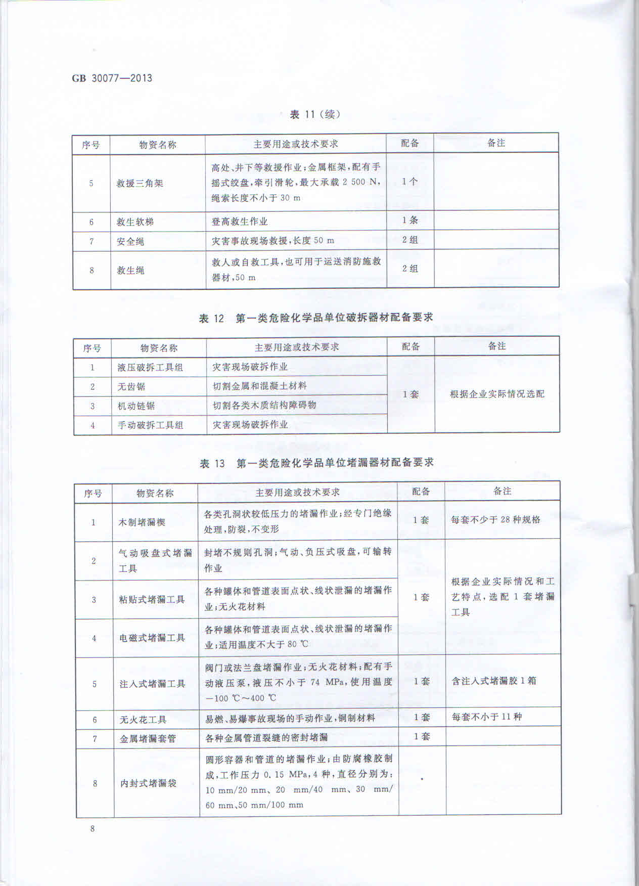 GB30077-2013危险化学品单位应急救援物资配备要求