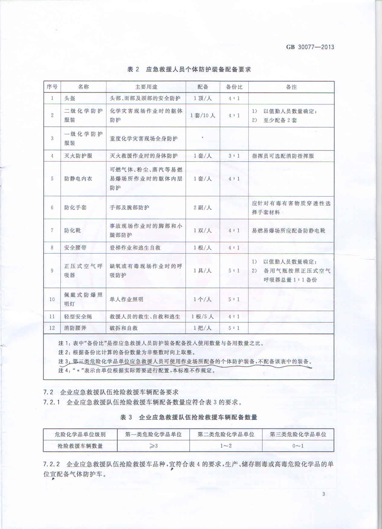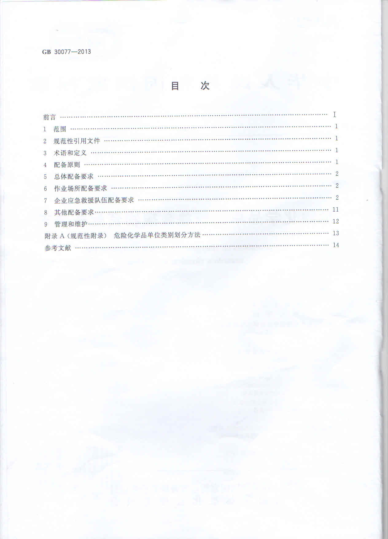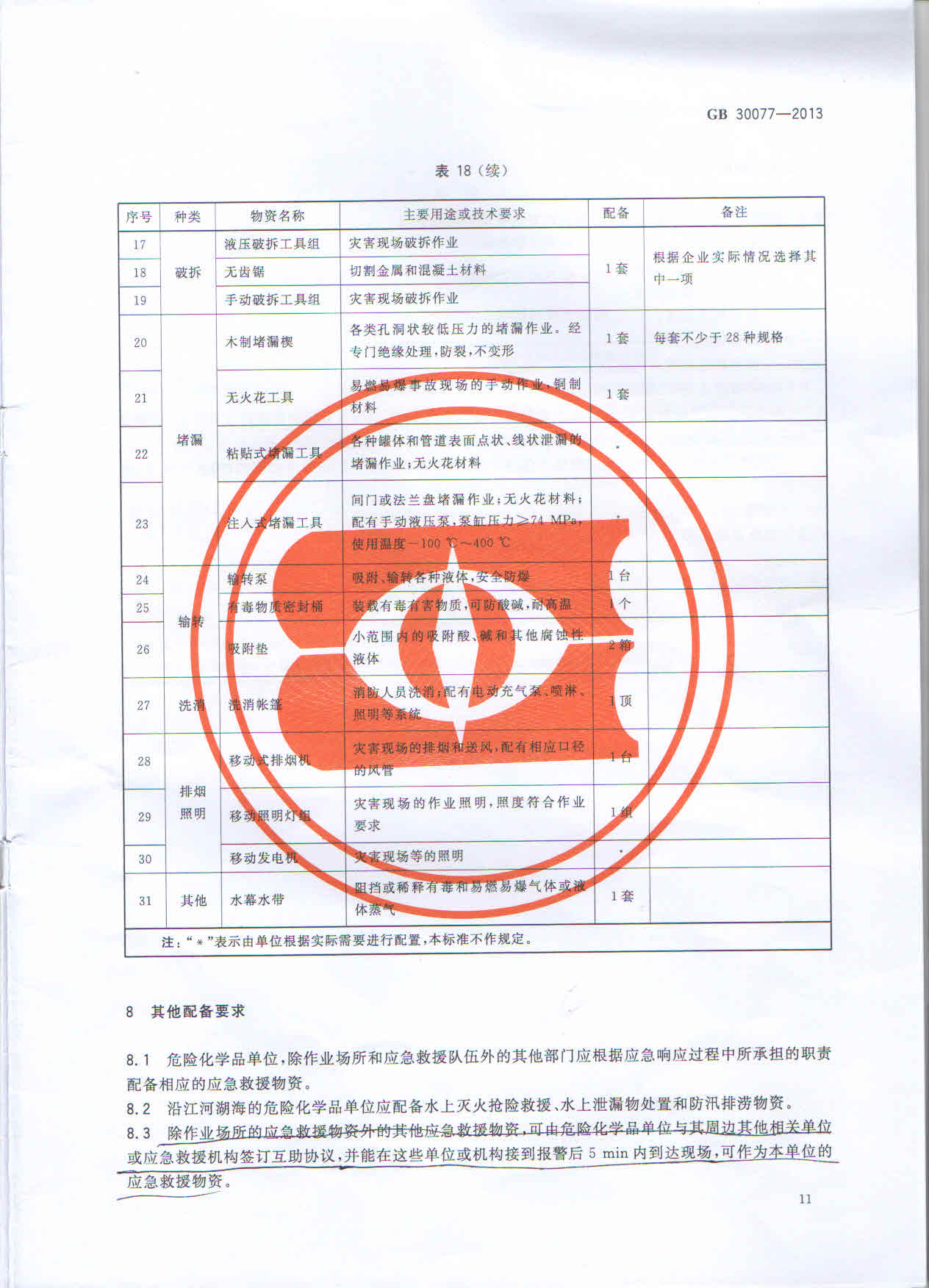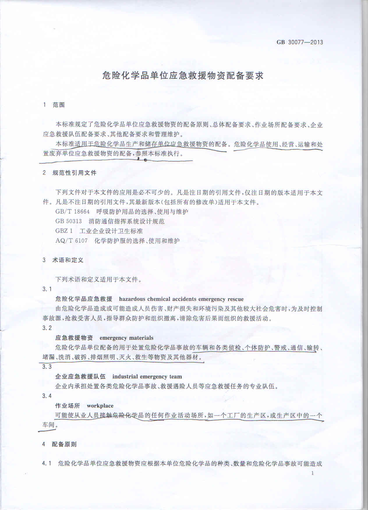 GB30077-2013危险化学品单位应急救援物资配备要求