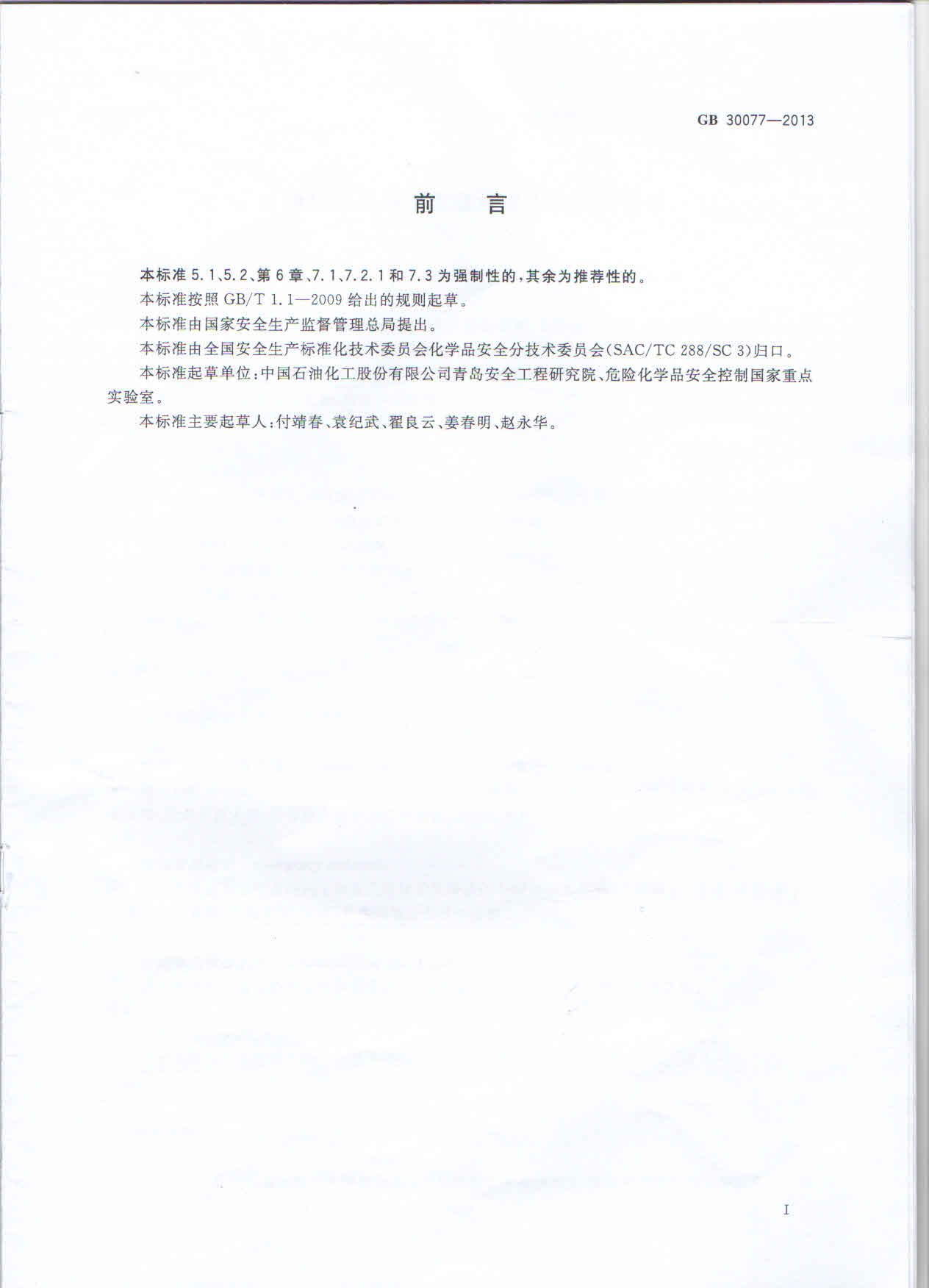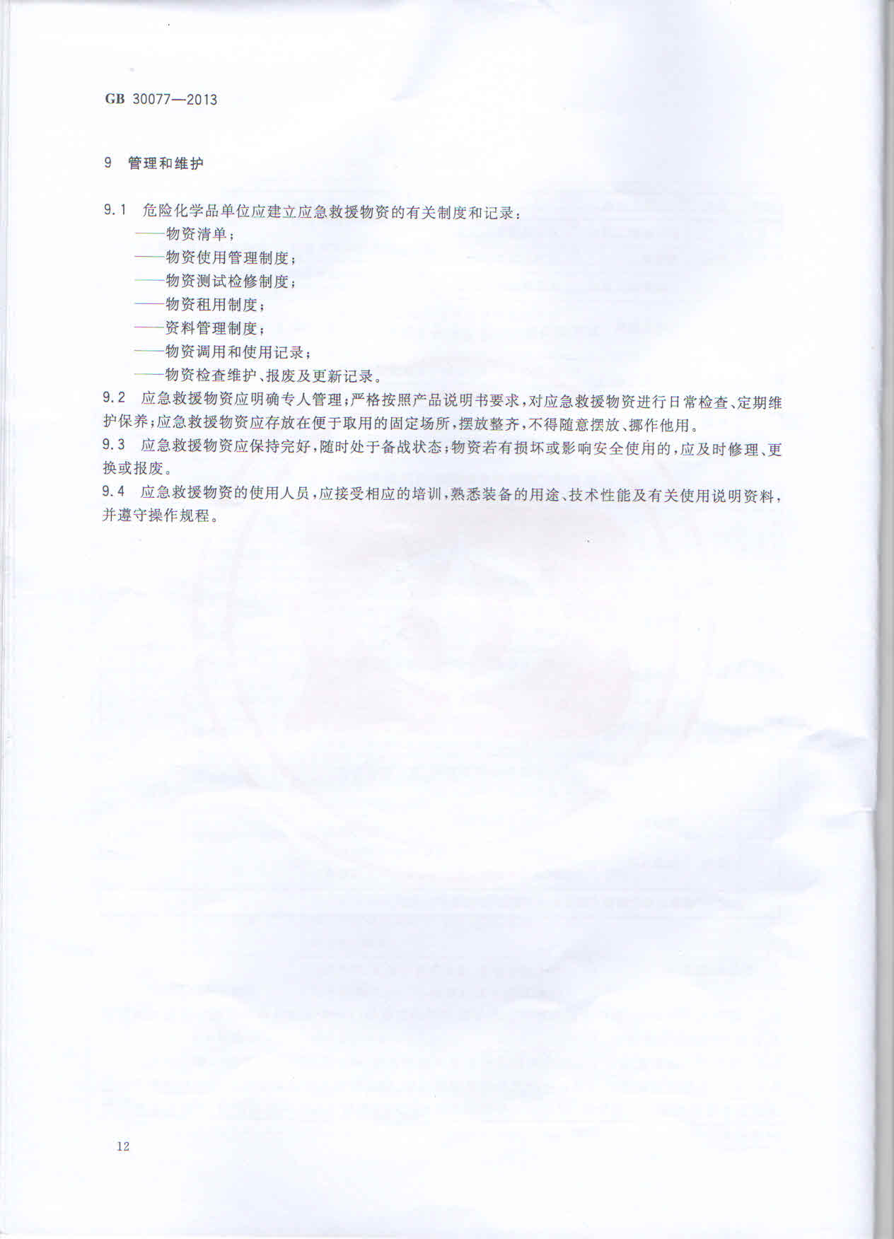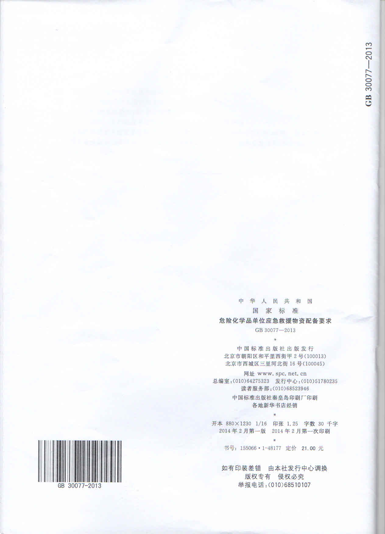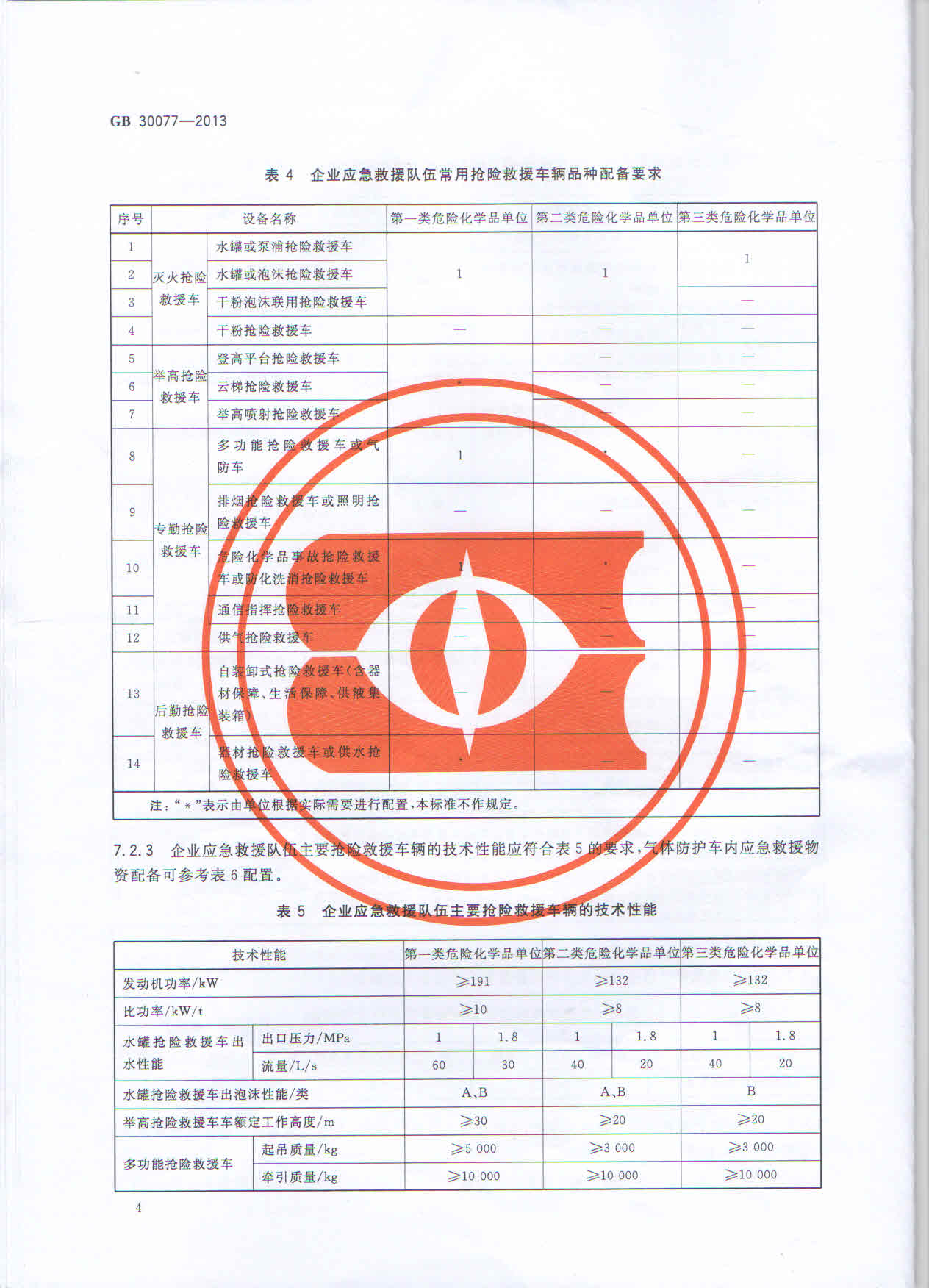 GB30077-2013危险化学品单位应急救援物资配备要求