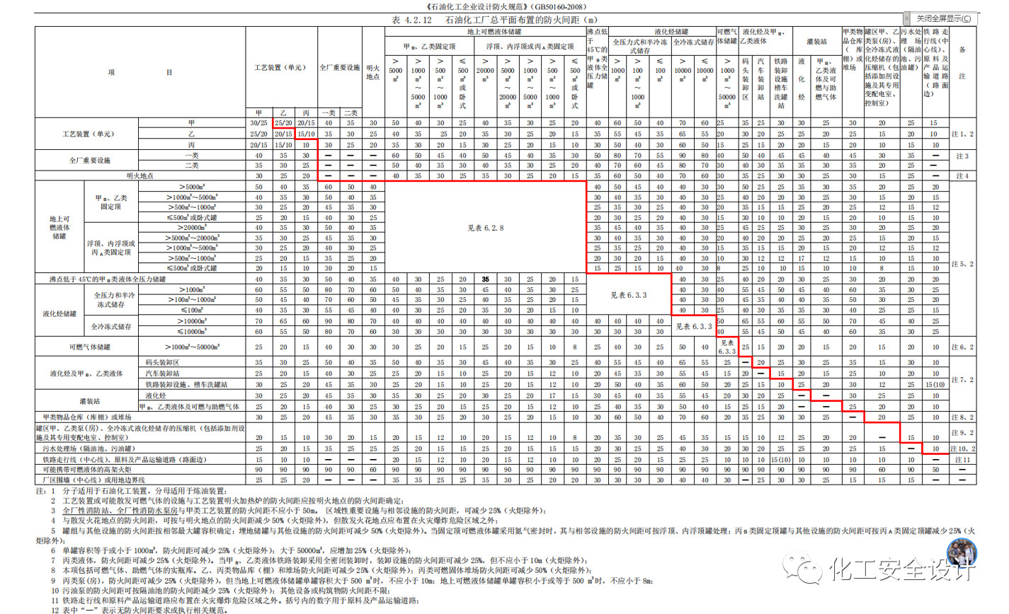第三步:仔细研究阅读4.2.12小字注释,,实际卡间距的过程中,,,,首先查阅表格中的数值,,,再考虑注释防火间距可以减少的情况。。。